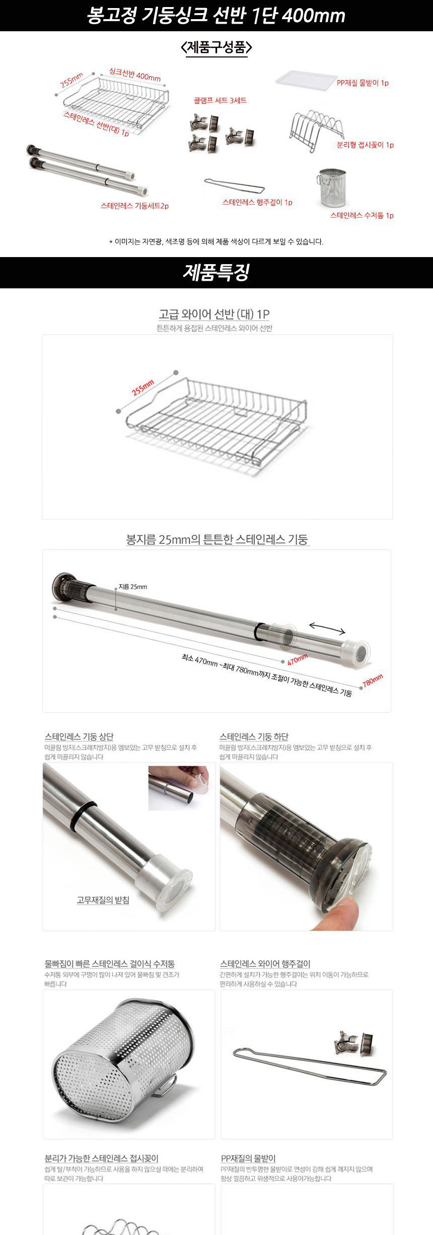 봉고정 기둥싱크 선반 1단 400mm 이미지/
