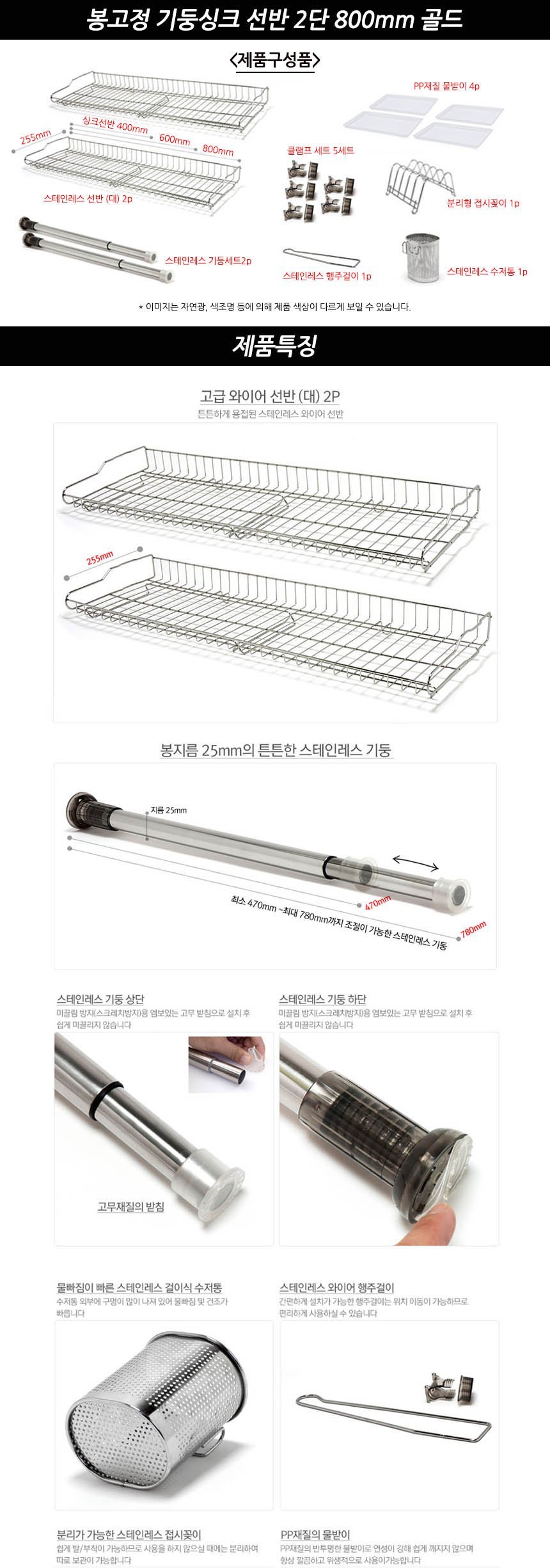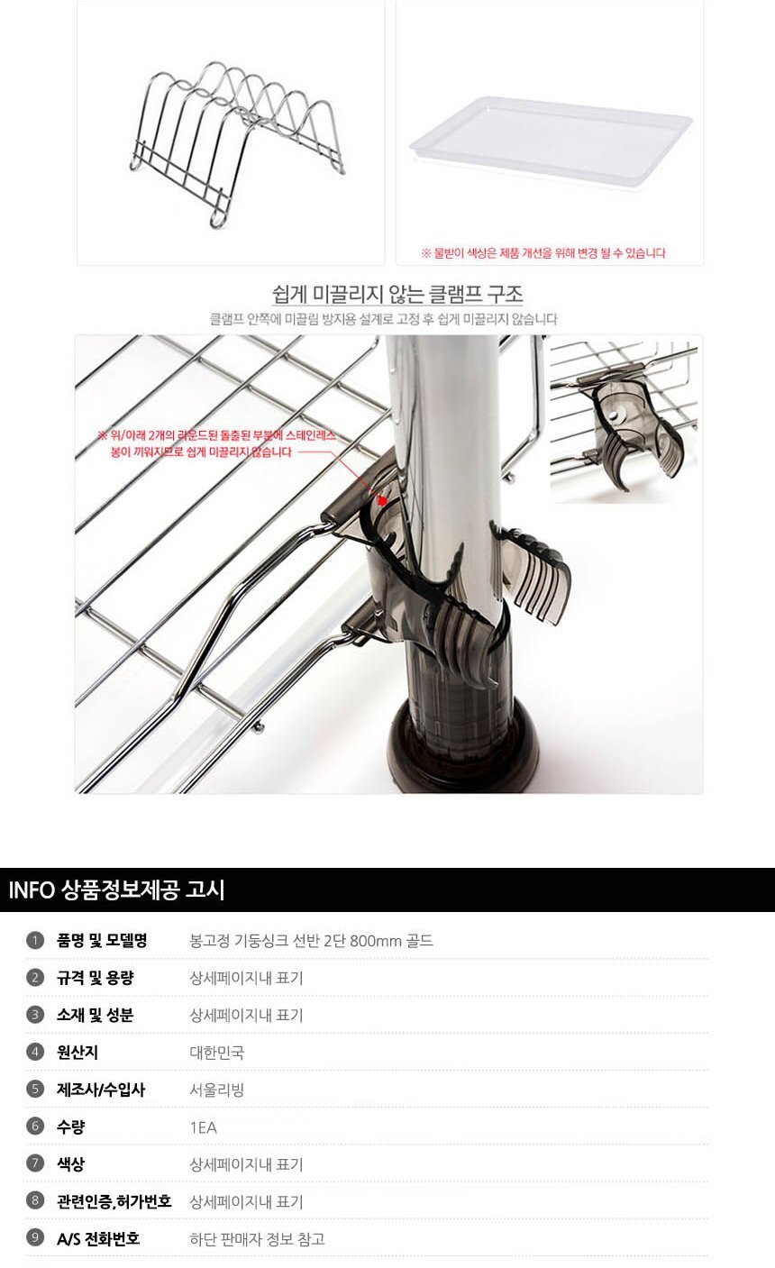 봉고정 기둥싱크 선반 2단 800mm 골드