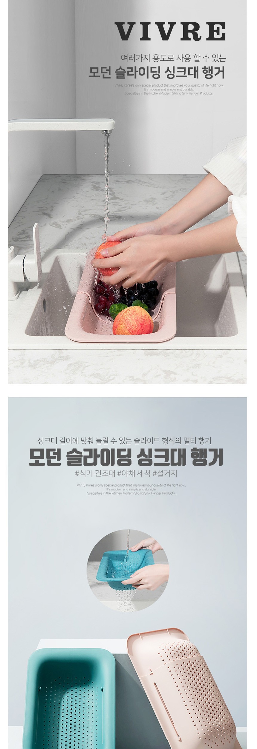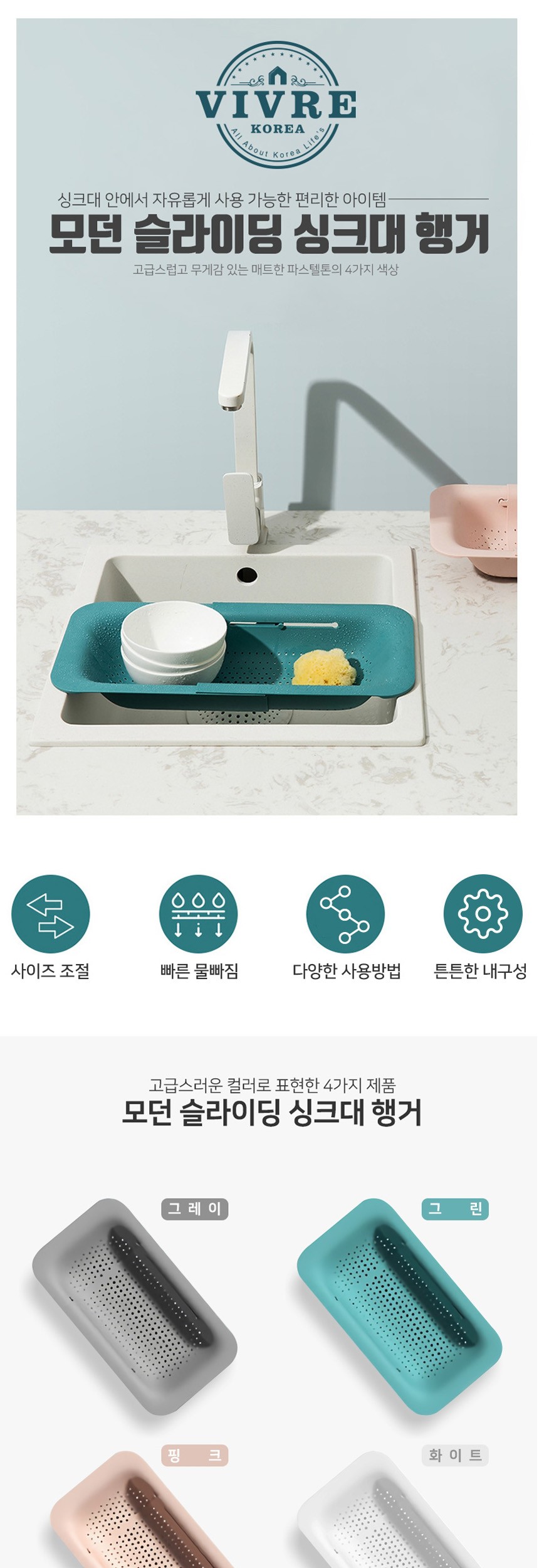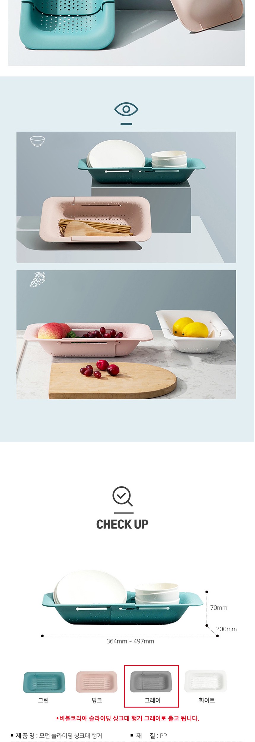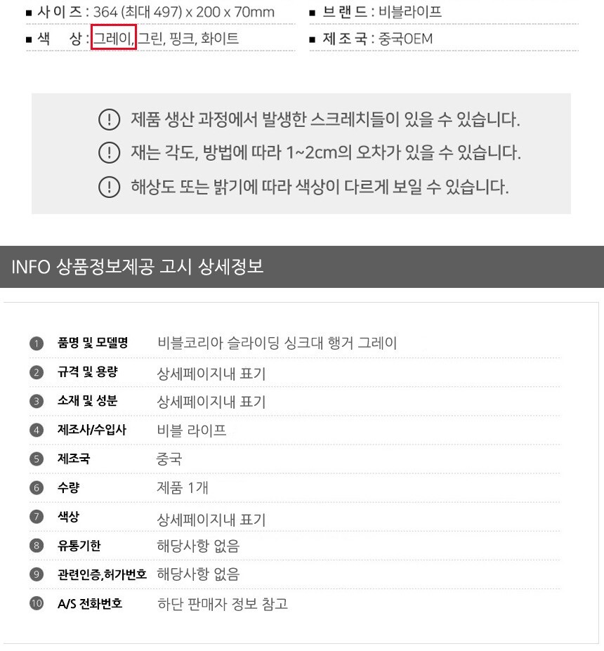 비블코리아 슬라이딩 싱크대 행거 그레이