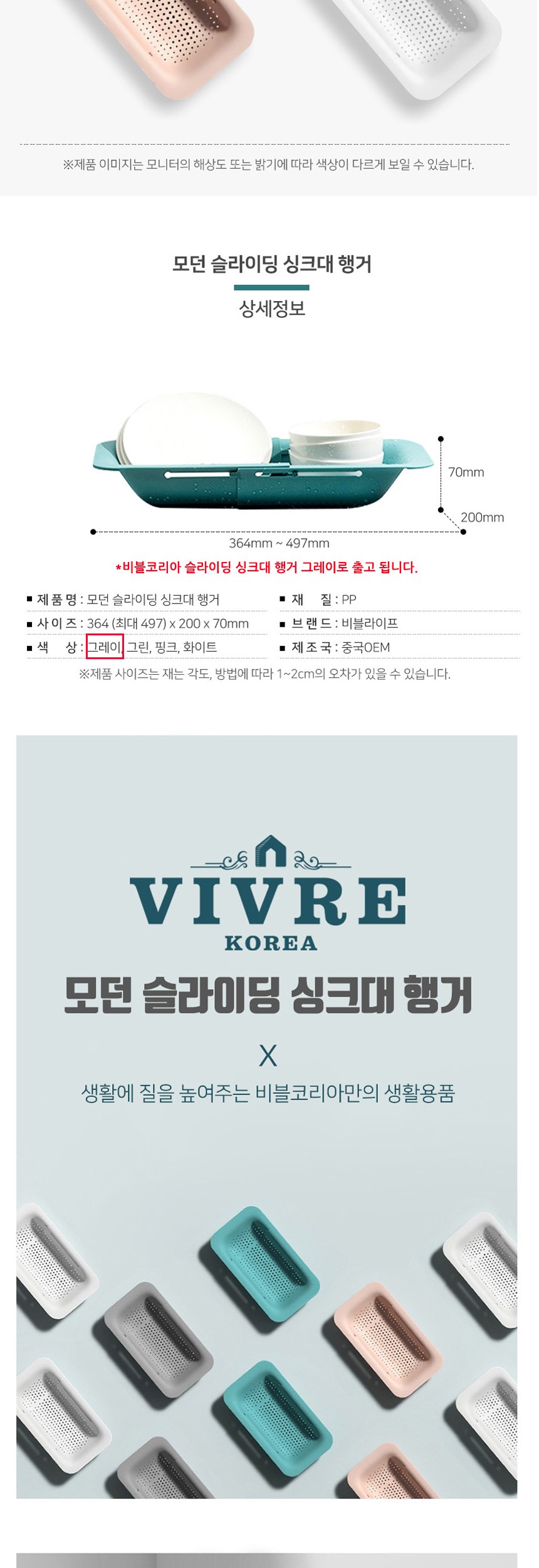 비블코리아 슬라이딩 싱크대 행거 그레이 이미지/