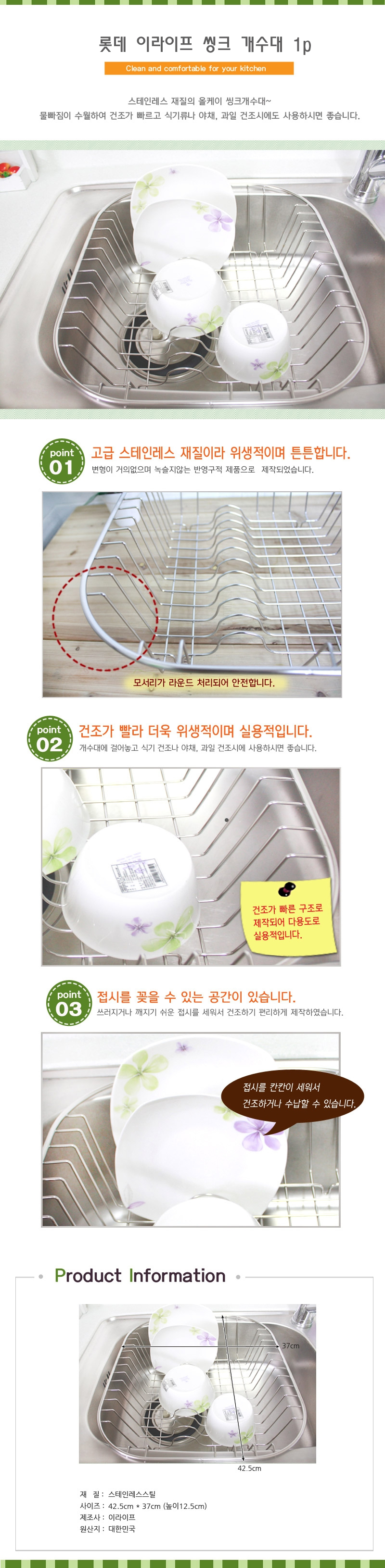 롯데 이라이프 씽크 개수대 1p 스텐식기건조대 주방식
