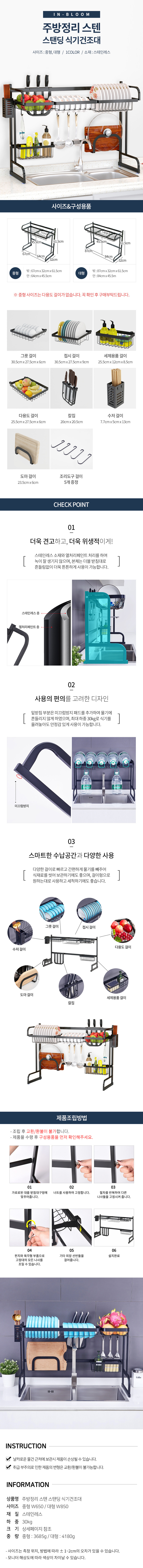 스텐 식기 건조대 설거지 그릇 건조대 싱크대 선반 중