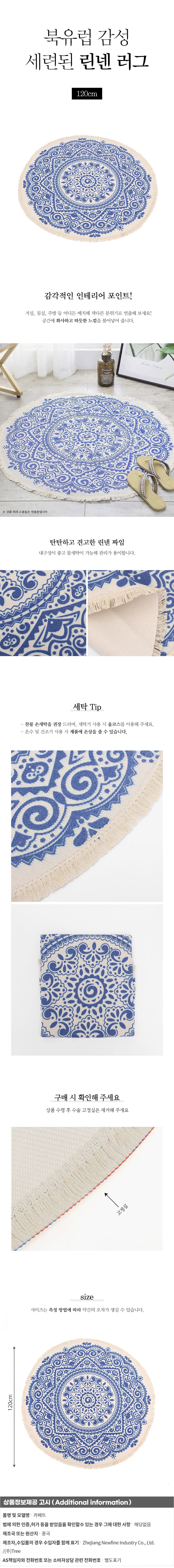 엔틱 유럽풍 린넨 원형 러그 카페트 120cm(블루)