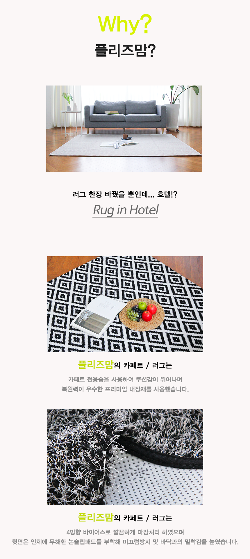 밋밋한 공간에 화사한 포인트가 되어줄 러그 카페트 입니다.