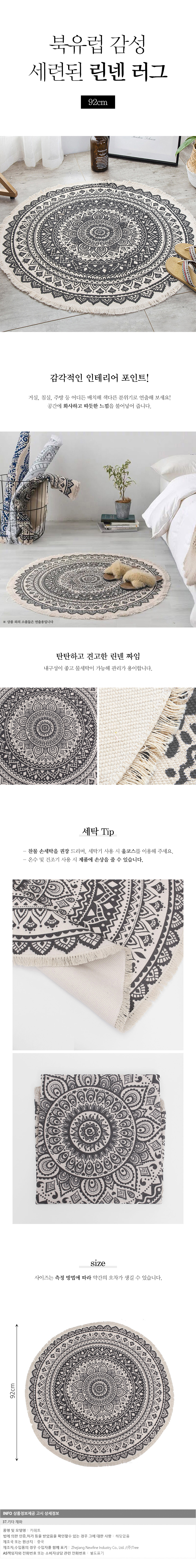 루미에르 유럽풍 린넨 원형 러그 카페트92cm(블랙) 이미지/
