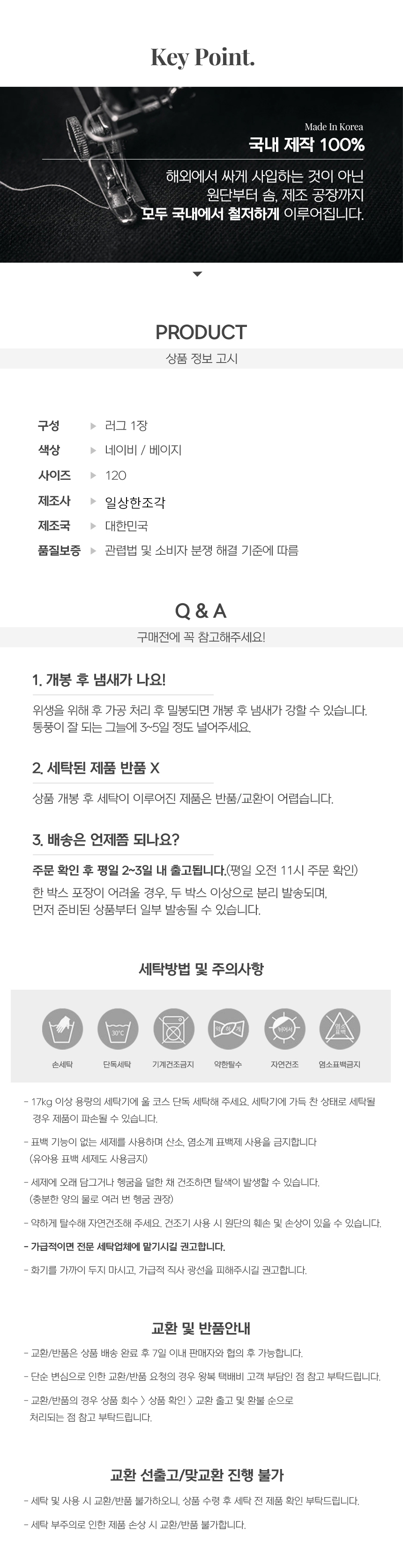7. 세탁방법 및 취급시 주의사항 : 상세정보 별도표기