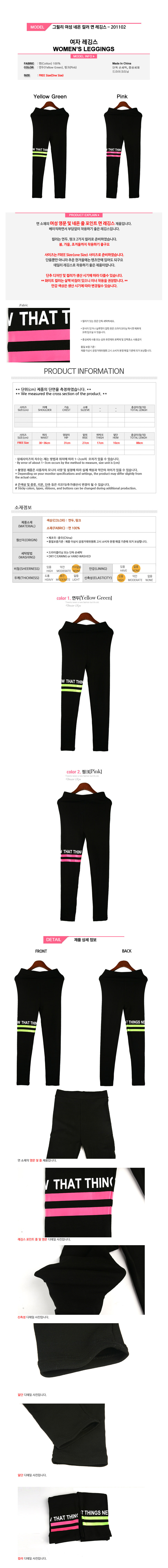 그릴리 여성 네온 컬러 면 레깅스 - 201102 이미지/