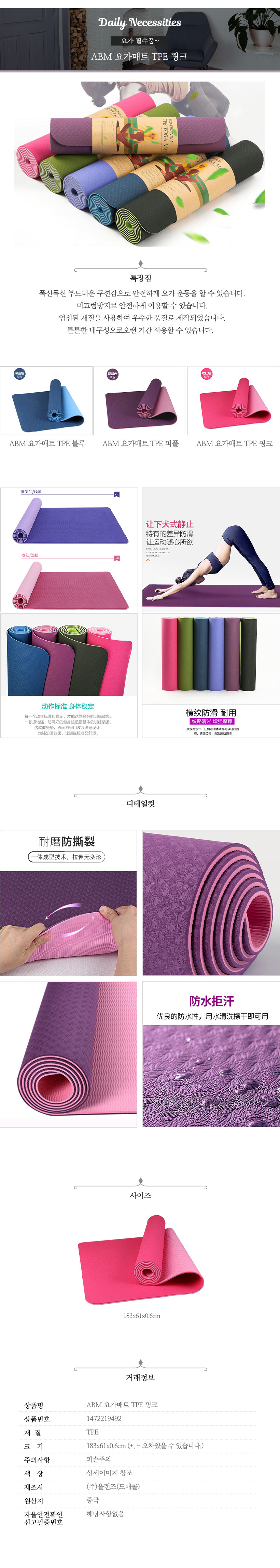 핑크 요가매트 TPE 매트 운동매트 홈트매트 요가용품