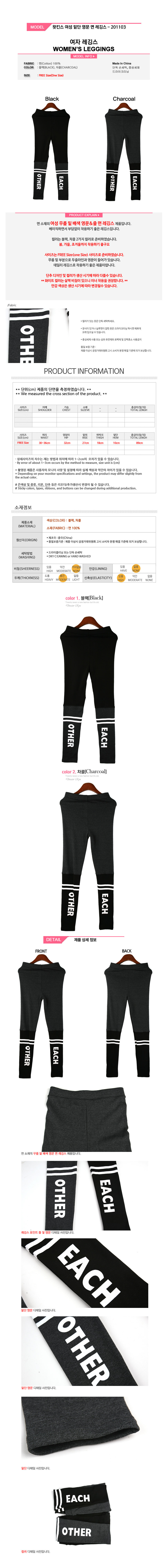 왓킨스 여성 밑단 영문 면 레깅스 - 201103 이미지/