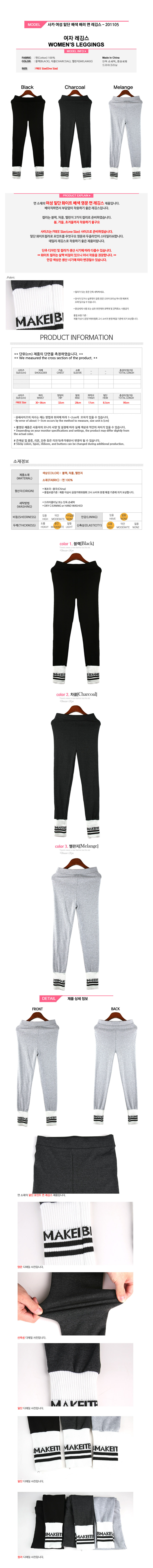 사카 여성 밑단 배색 배러 면 레깅스 - 201105