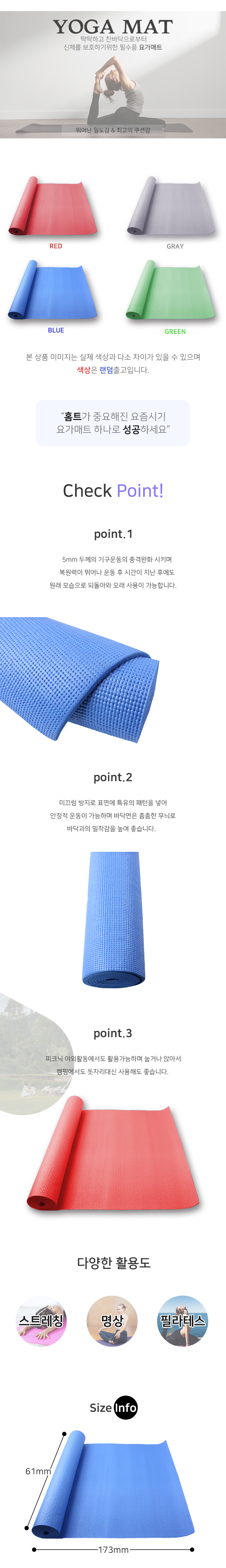 요가매트 단색61x173cm(색상랜덤)