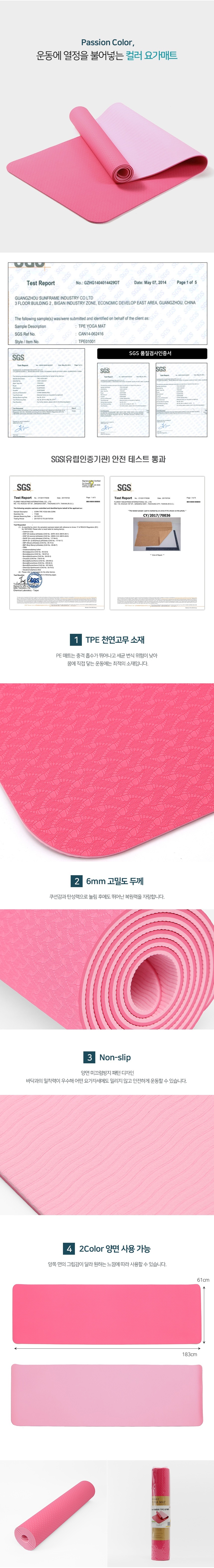 논슬립 양면 요가매트 헬스 홈트 운동매트 6mm 핑크