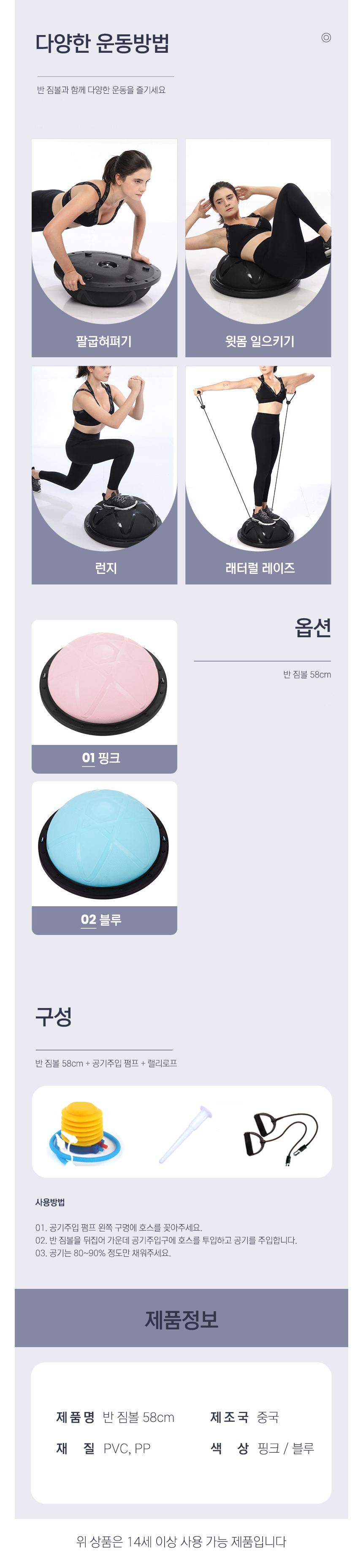 반 짐볼 58cm 밸런스볼 하프 필라테스 보수 운동법