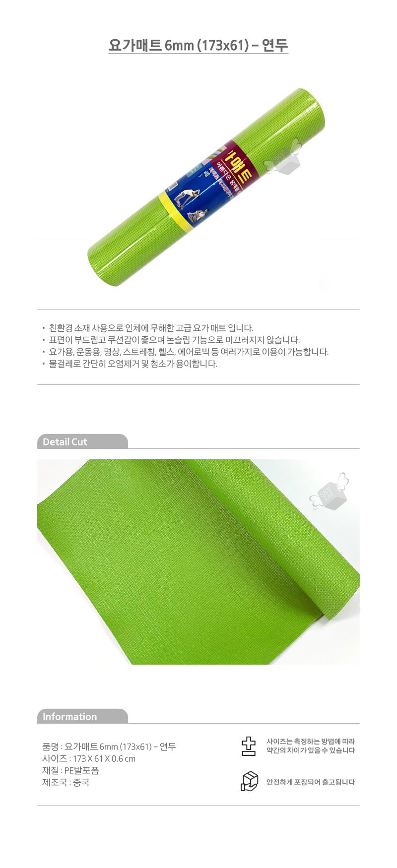 논슬립 부드러운 요가매트 6mm 연두 헬스매트 홈짐