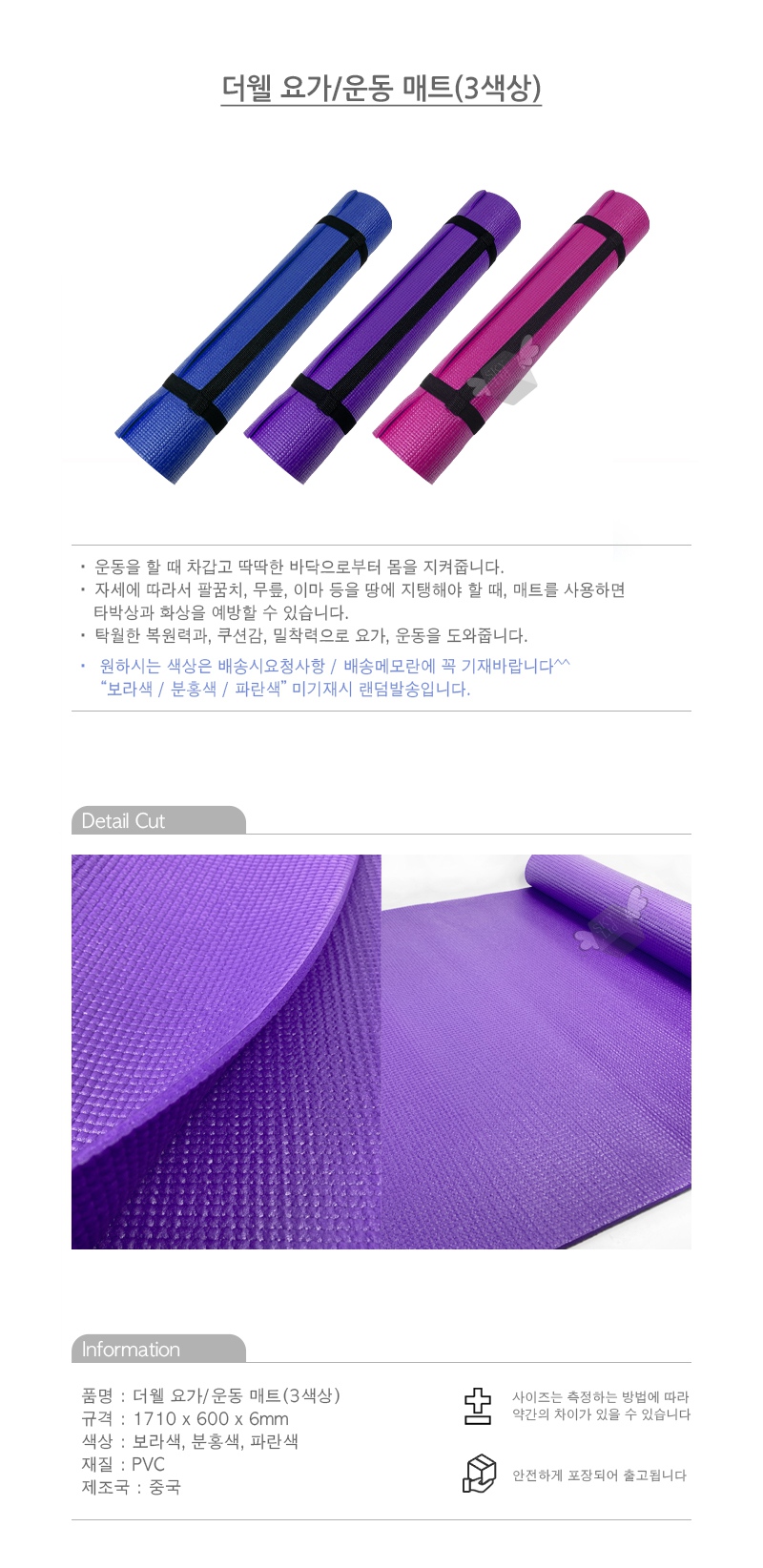 더웰 요가운동매트(밴드)6mm 색상랜덤 이미지/