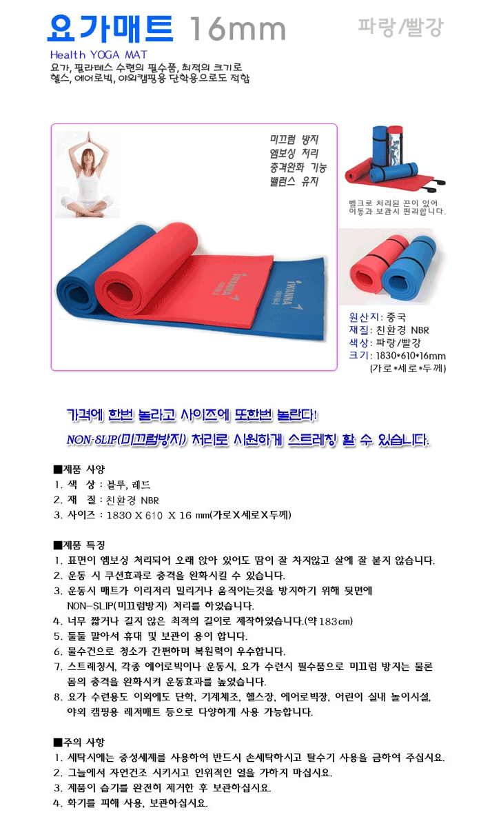 헬스 스트레칭 요가 매트 16mm 이미지/