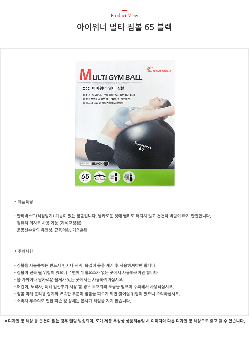 아이워너 멀티 짐볼 65 블랙 8158 이미지/