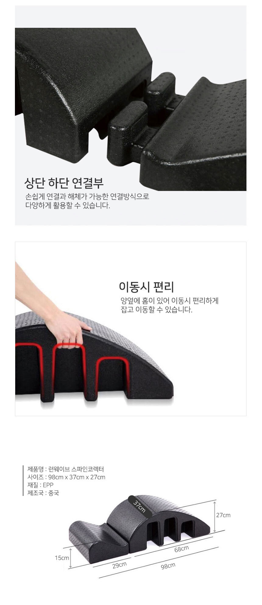 폼 스파인코렉터/ 홈 트레이닝/ 필라테스/ 척추 등 스트레칭 이미지/