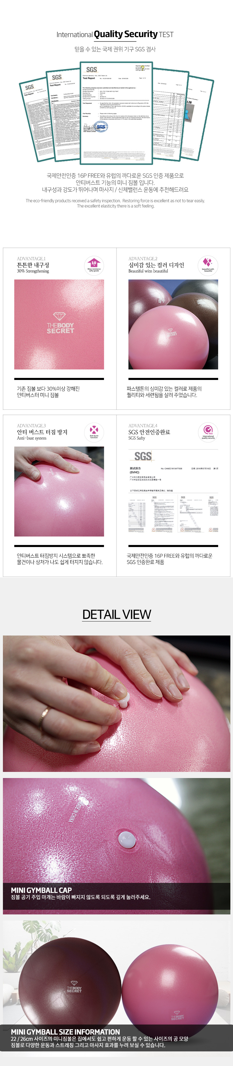 더바디시크릿 미니짐볼 22cm 26cm 요가볼 홈트레이닝볼 마사지볼 필라테스볼