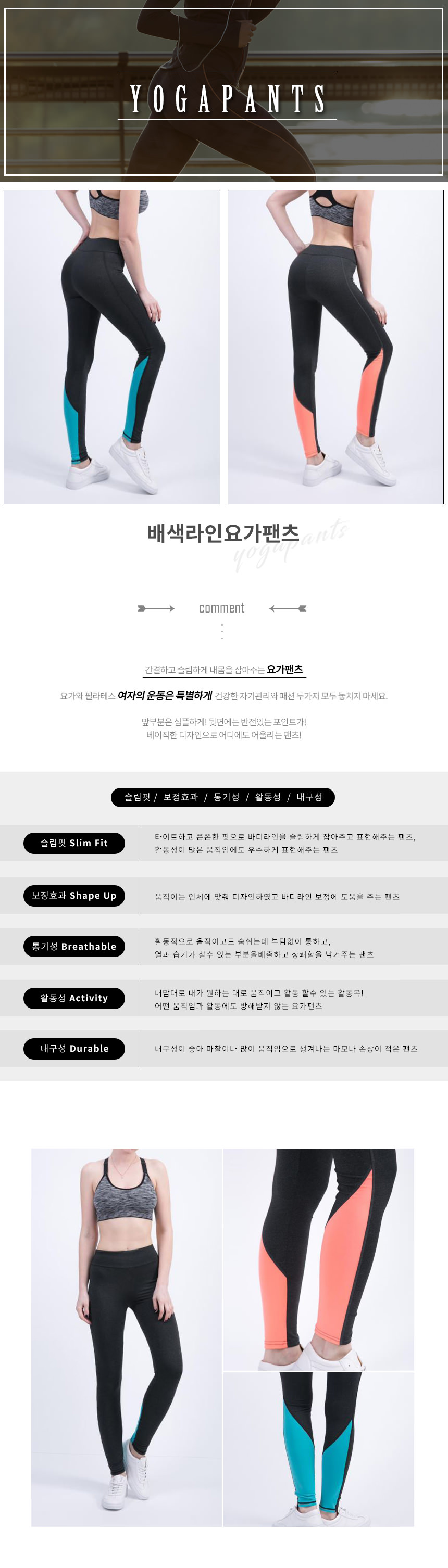 배색라인요가팬츠 헬스 패션 스포츠 운동 타이즈 이미지/