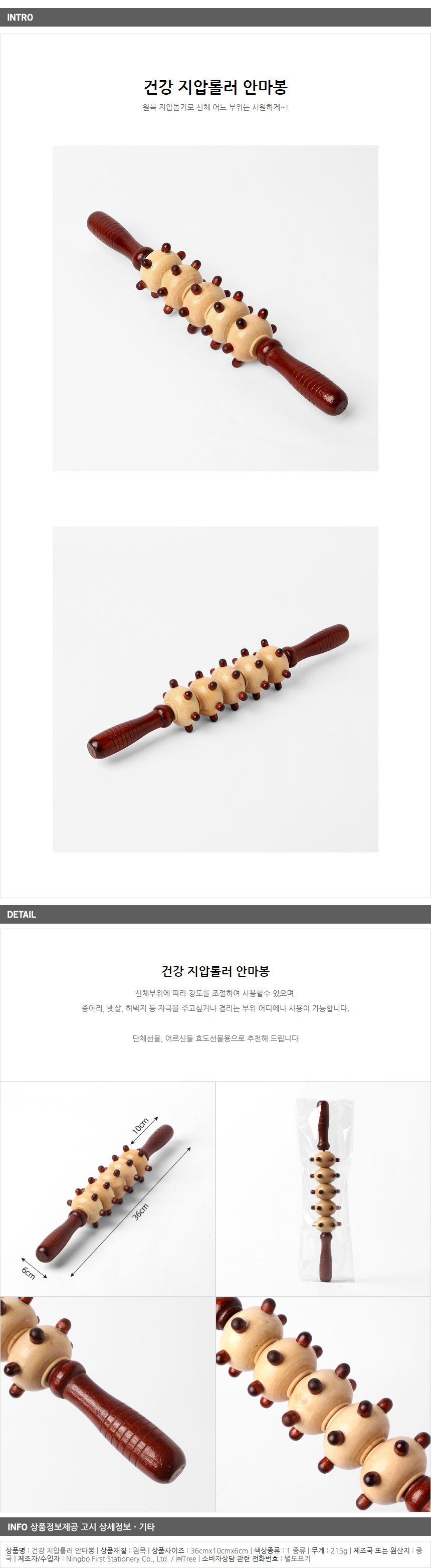 원목돌기 지압롤러 안마기 안마봉 마사지기(A형) 이미지/