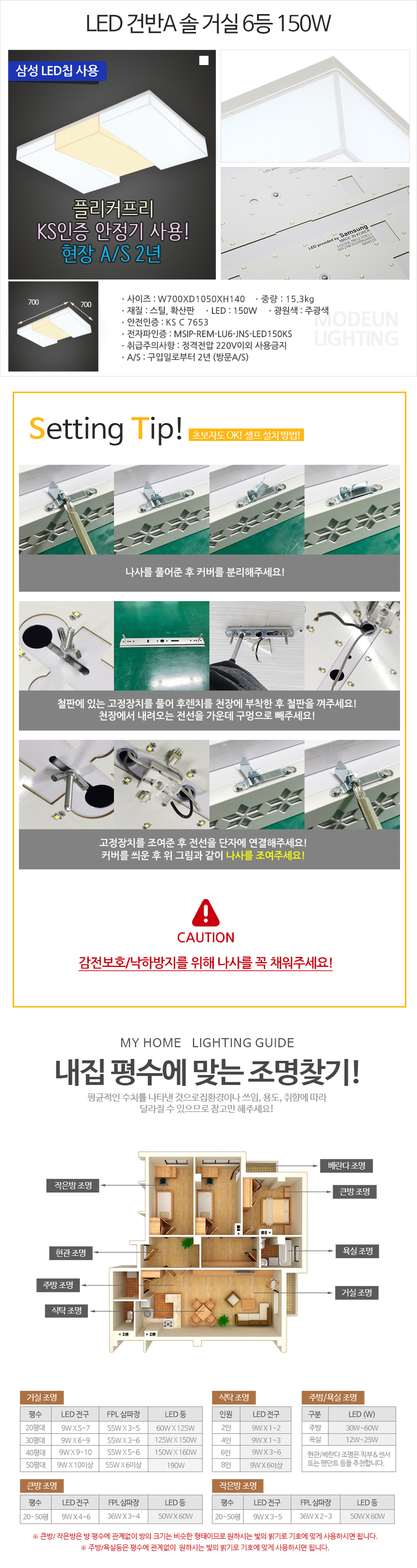 • 품명 및 모델명LED 건반A 솔 150W 거실 6등