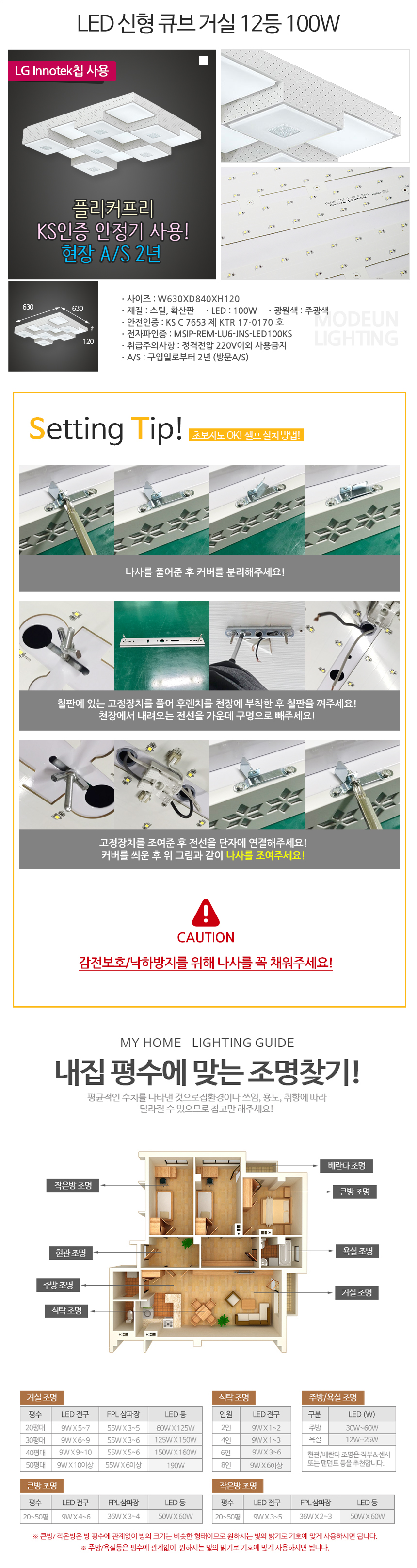 • 품명 및 모델명LED 신형 큐브 100W 거실 12등