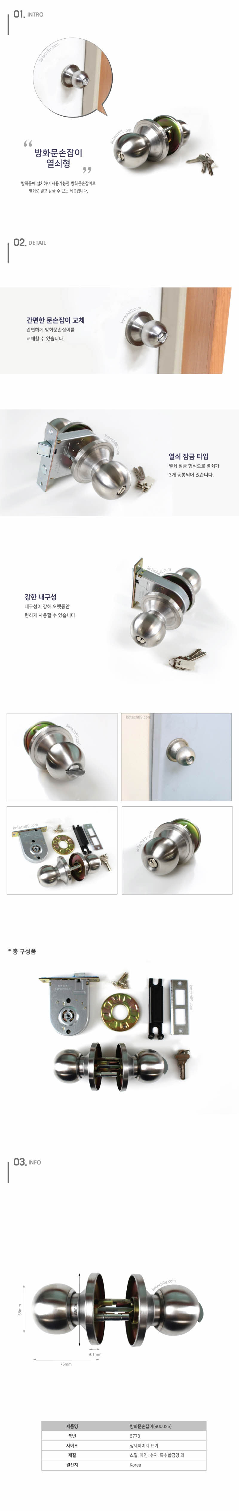코텍 도어록 방화문손잡이 9000SS 이미지/