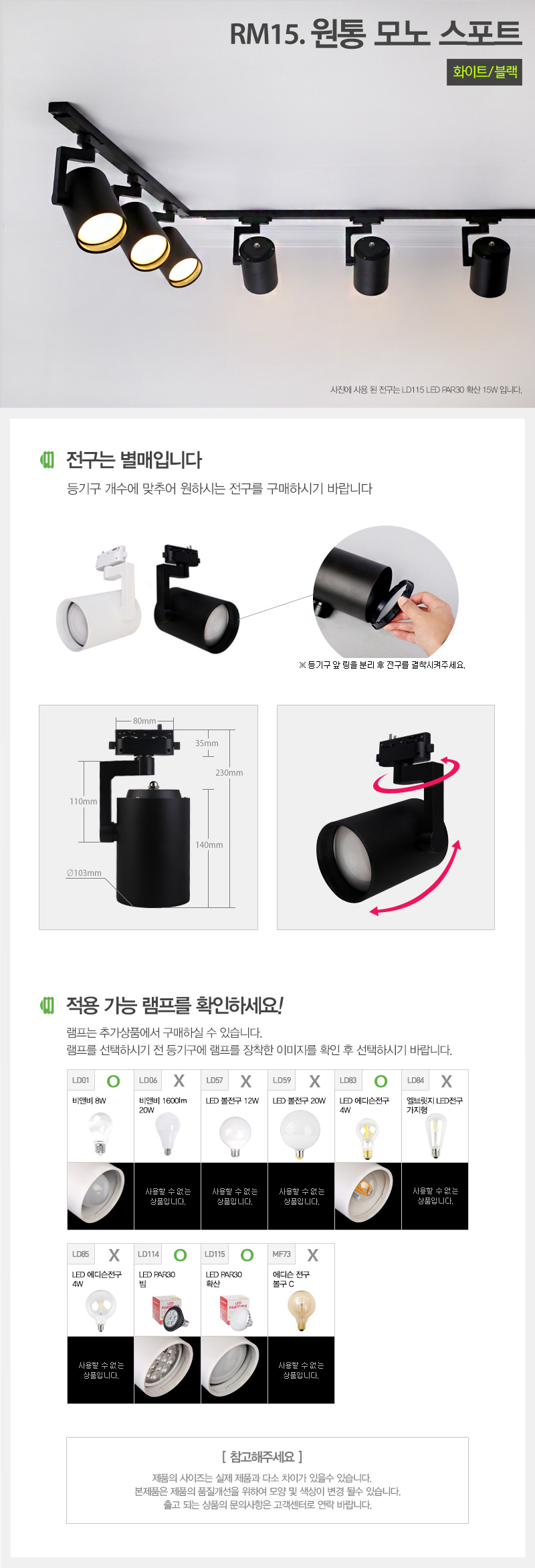 원통 모노스포트 레일등기구 화이트 블랙 118236 이미지/