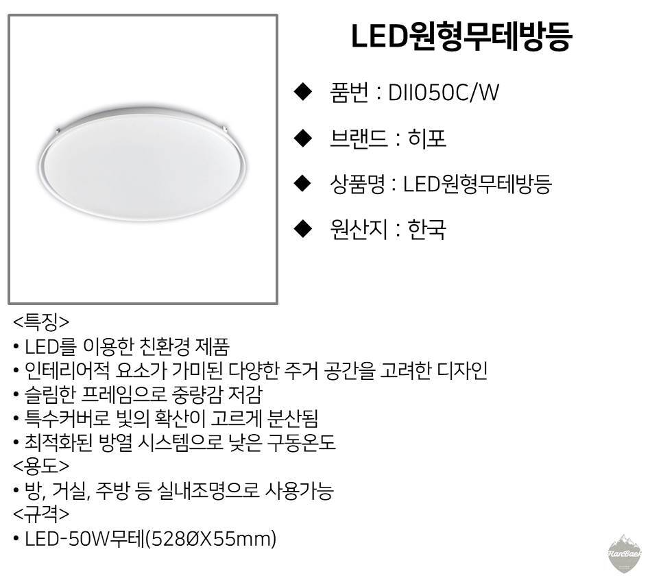 히포 LED원형무테방등 DII050CW 417-5593 이미지/