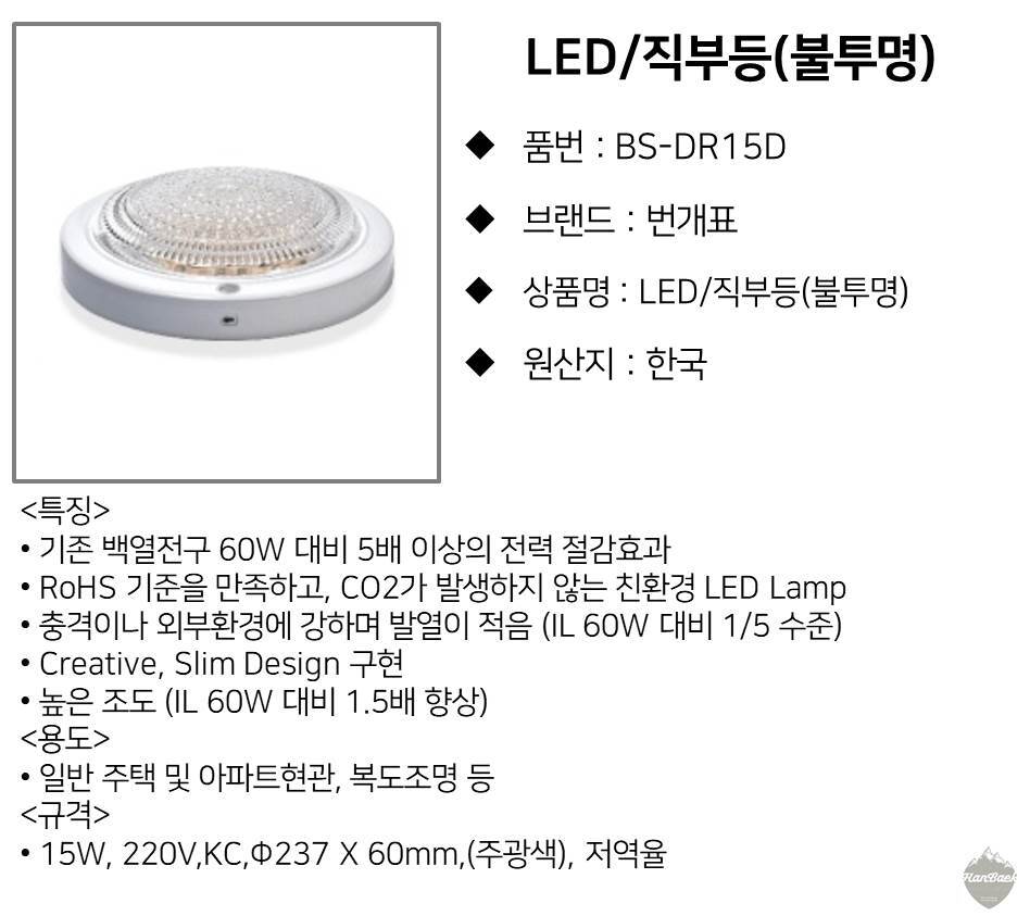 번개표 LED 직부등 센서등 BS-DR15D 417-6054