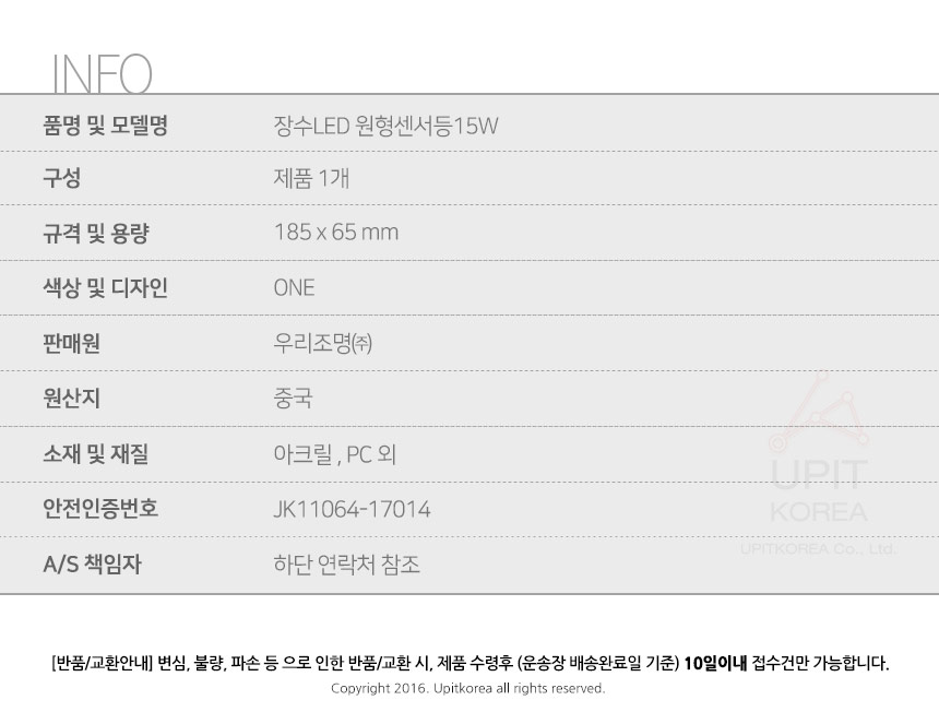 장수LED 원형센서등15W 6264 이미지/