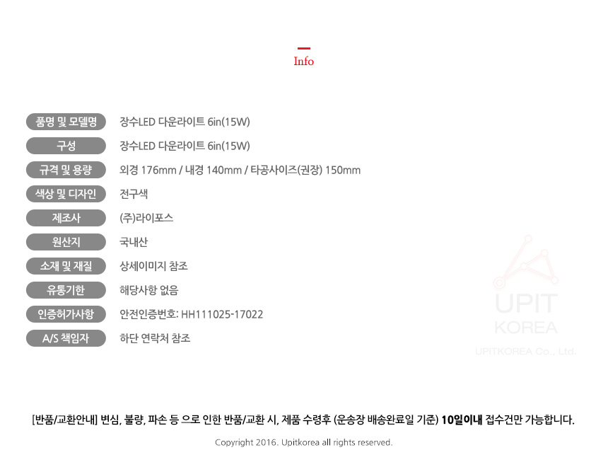 장수LED 다운라이트 6in(15W) 2679 이미지/