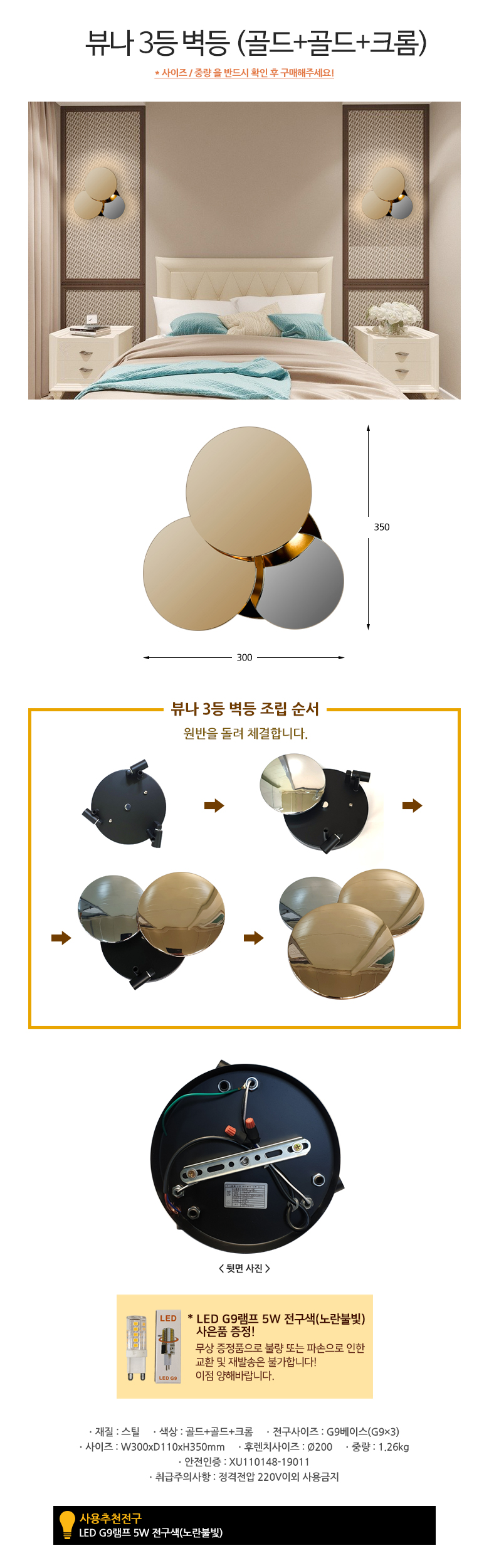 • 품명 및 모델명뷰나 3등 벽등 (골드+골드+크롬)