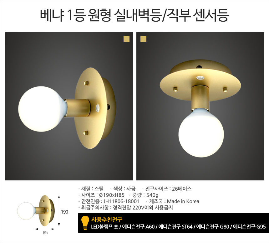 • 품명 및 모델명베냐 1등 원형 실내벽등직부 센서등
