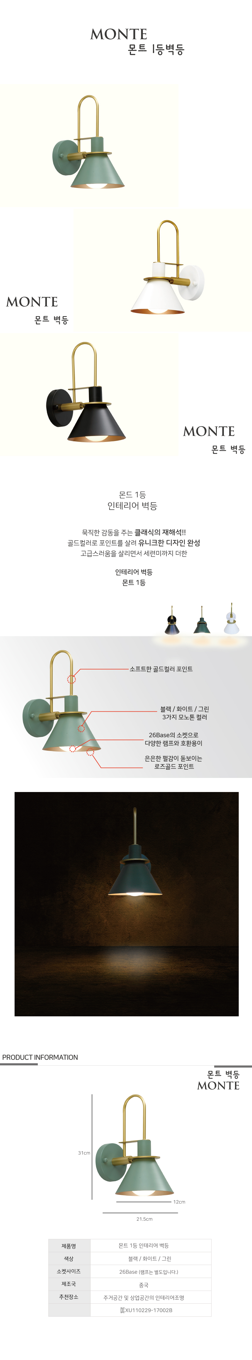 인테리어벽등 몬트B/R 그린(E26) 이미지/