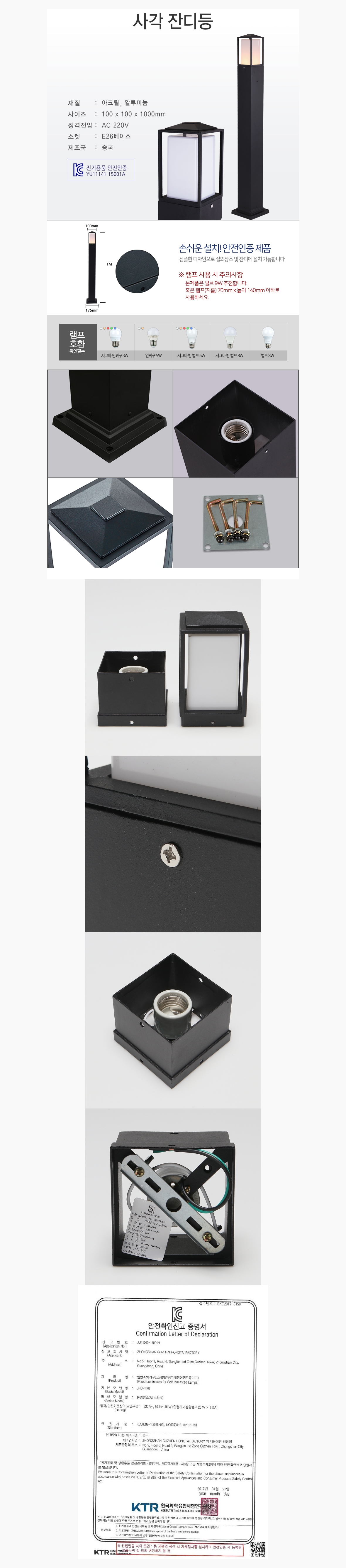 인테리어 공간조명 사각 잔디등 100X100X1000mm 이미지/