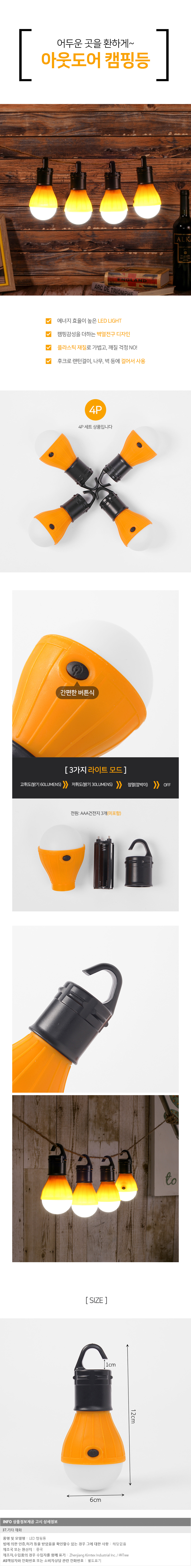 야외 LED 캠핑등 4p (옐로우) 캠핑조명 차박전구