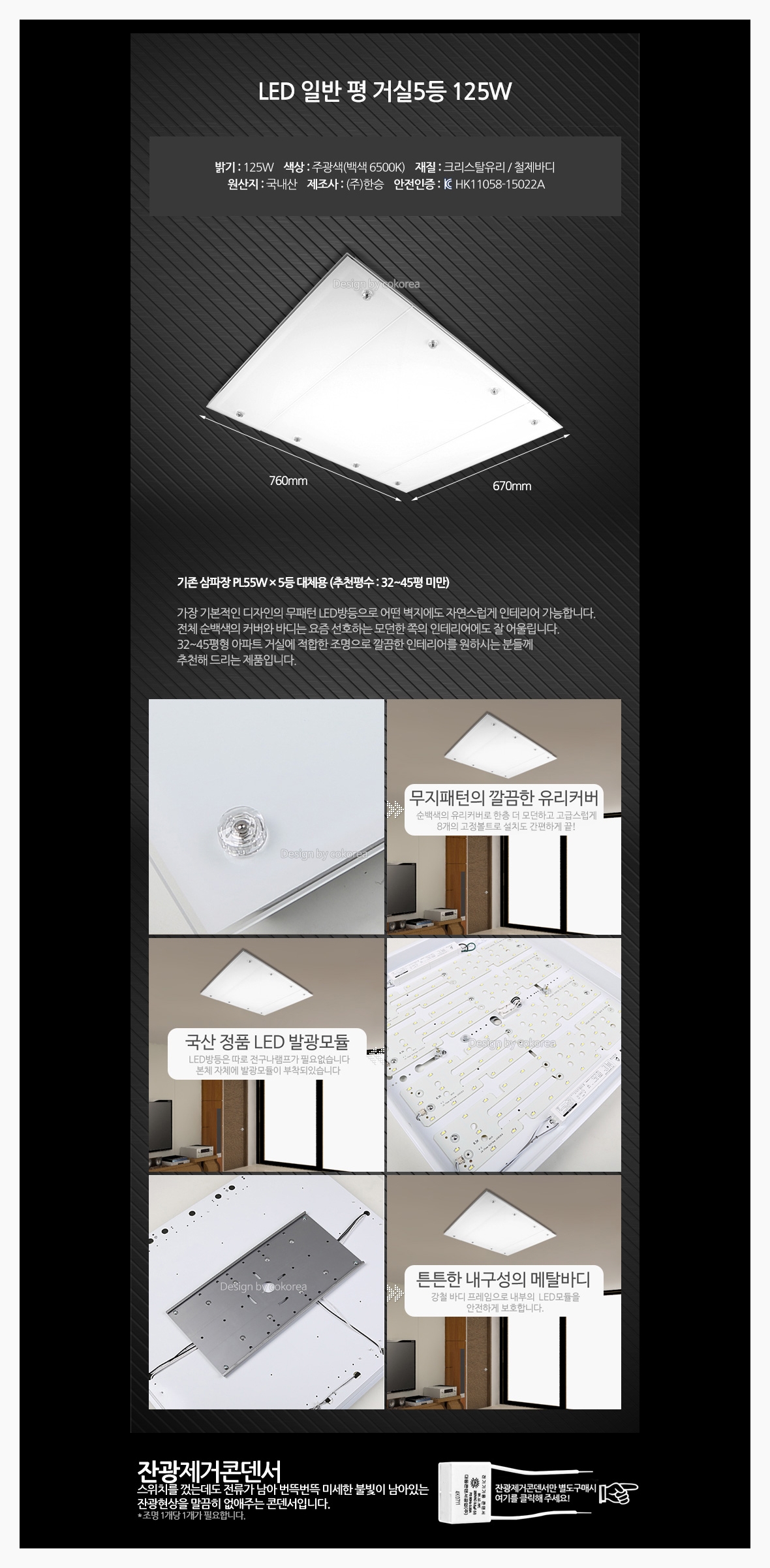 인테리어 홈조명 평면 5등 LED거실등 125W