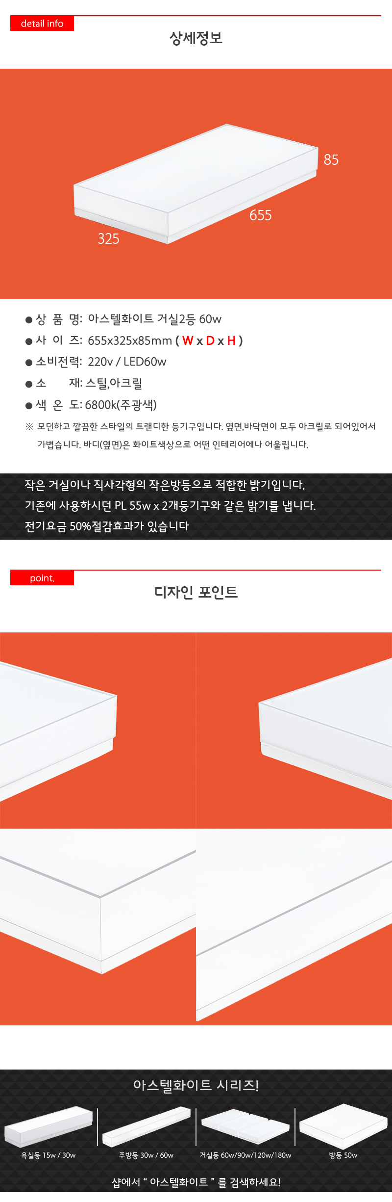 <상품명 : 아스텔화이트 거실2등 LED 60W 절전형 거>