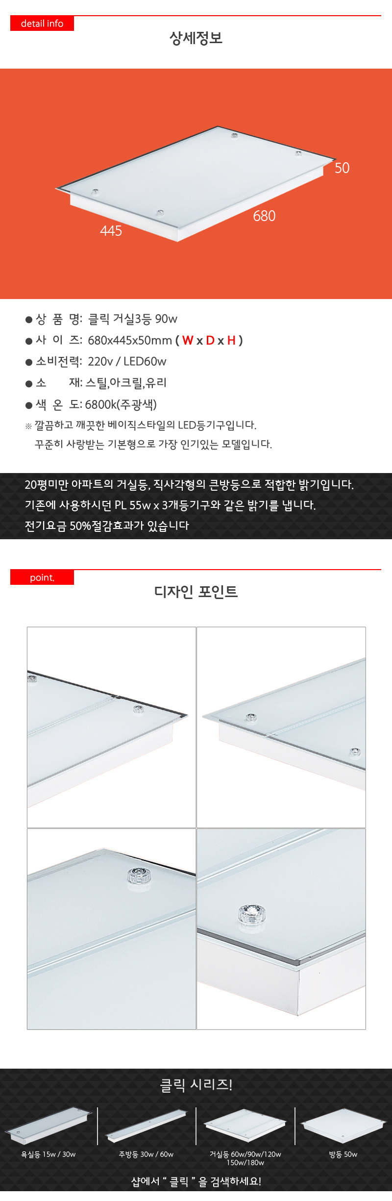 클릭 거실3등 LED 90W 절전형 거실등 원