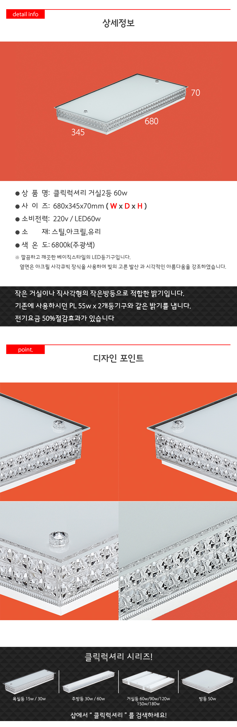 클릭럭셔리 거실2등 LED 60W 절전형 거실