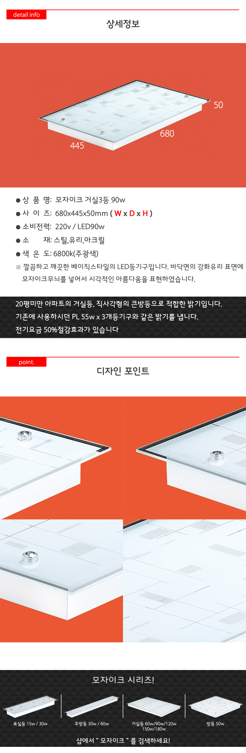 모자이크 거실3등 LED 90W 절전형 거실등