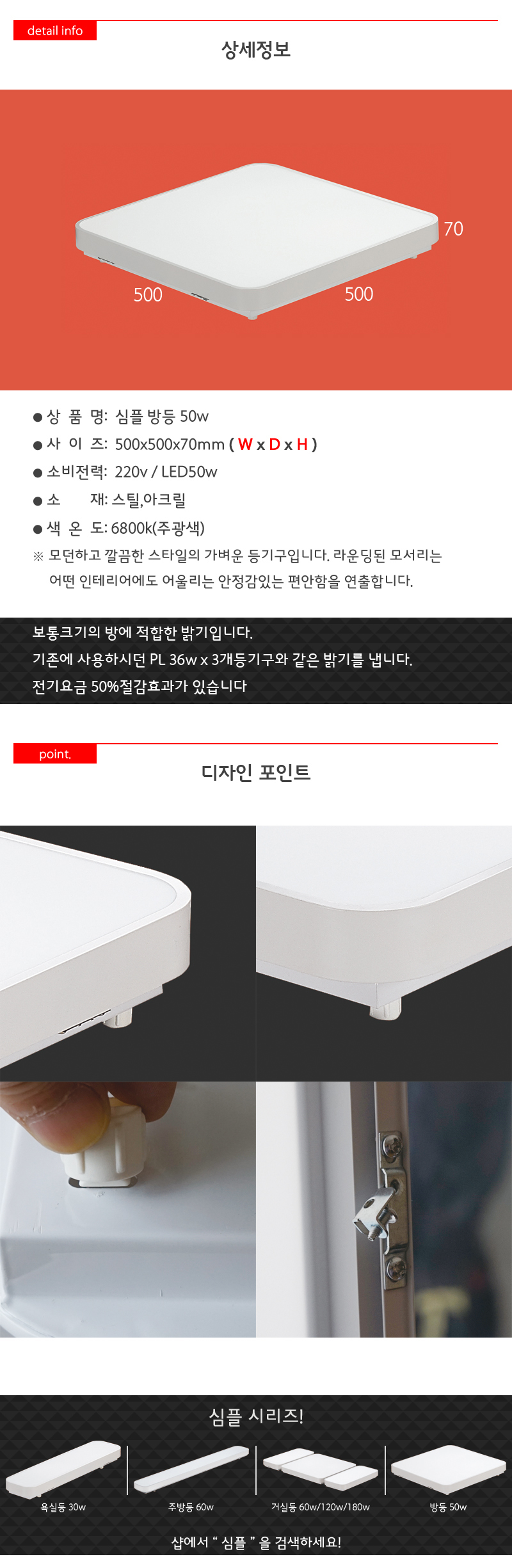 심플 방등 LED 50W 절전형 천정등 심플