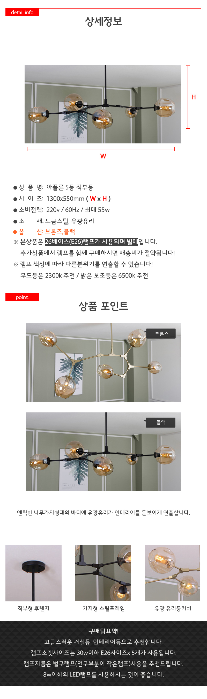 아폴론 5등 직부등 55w(LED55wx5) 감성디자인 이미지/