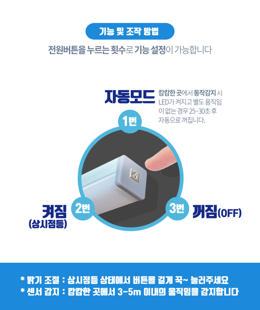 이엘이디 삼성 LED 스마트 무선센서등 업그레이드 현관 계단 붙이는 충전식 무드등 간접 조