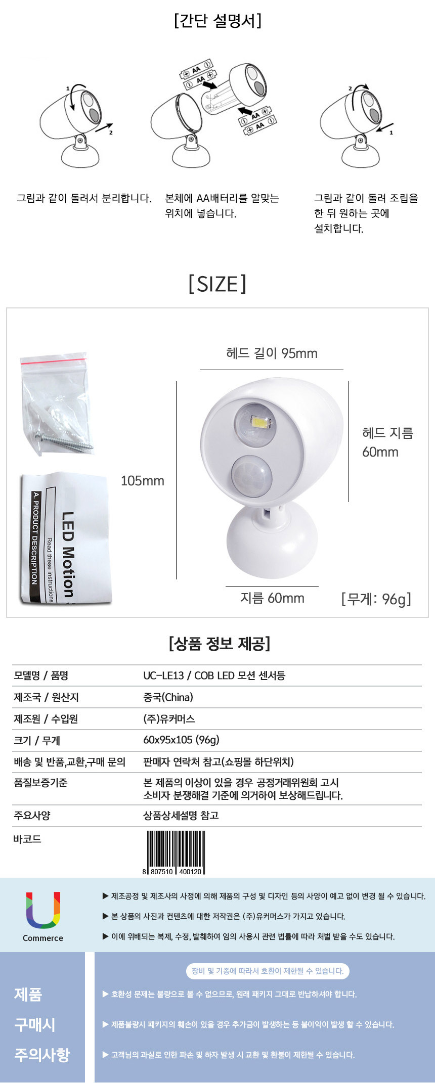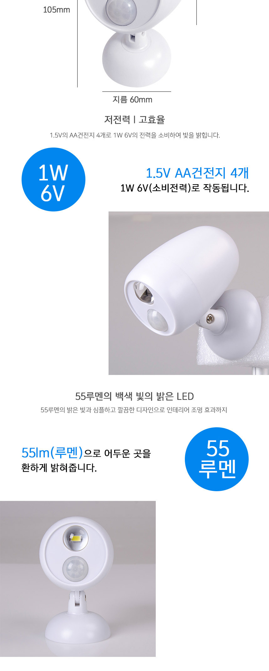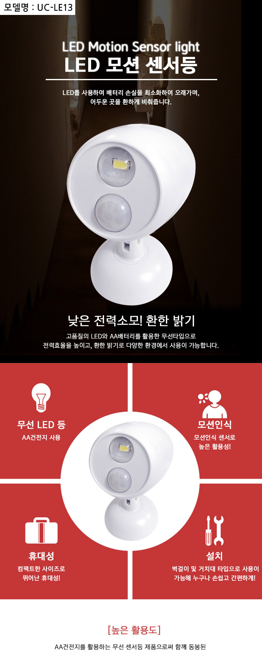 <상품명 : 무선 SMD LED센서등 라이트 모션 동작감지 건전지>