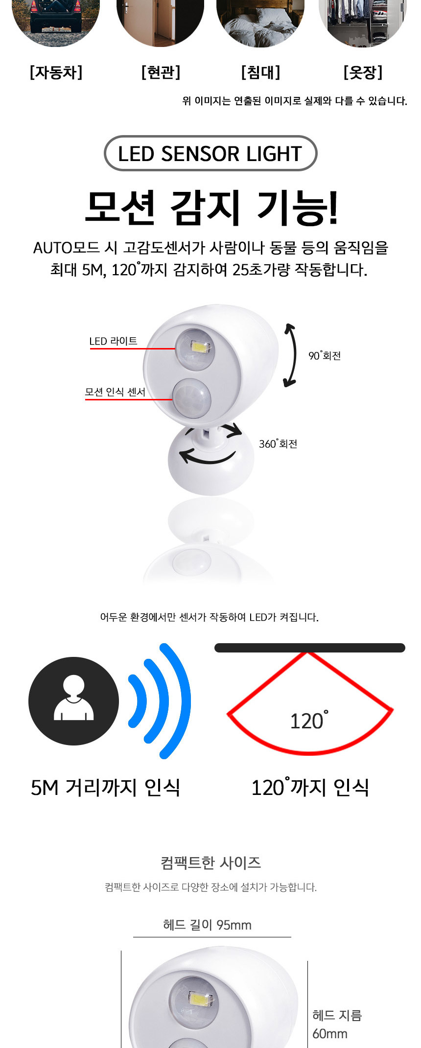 무선 SMD LED센서등 라이트 모션 동작감지 건전지