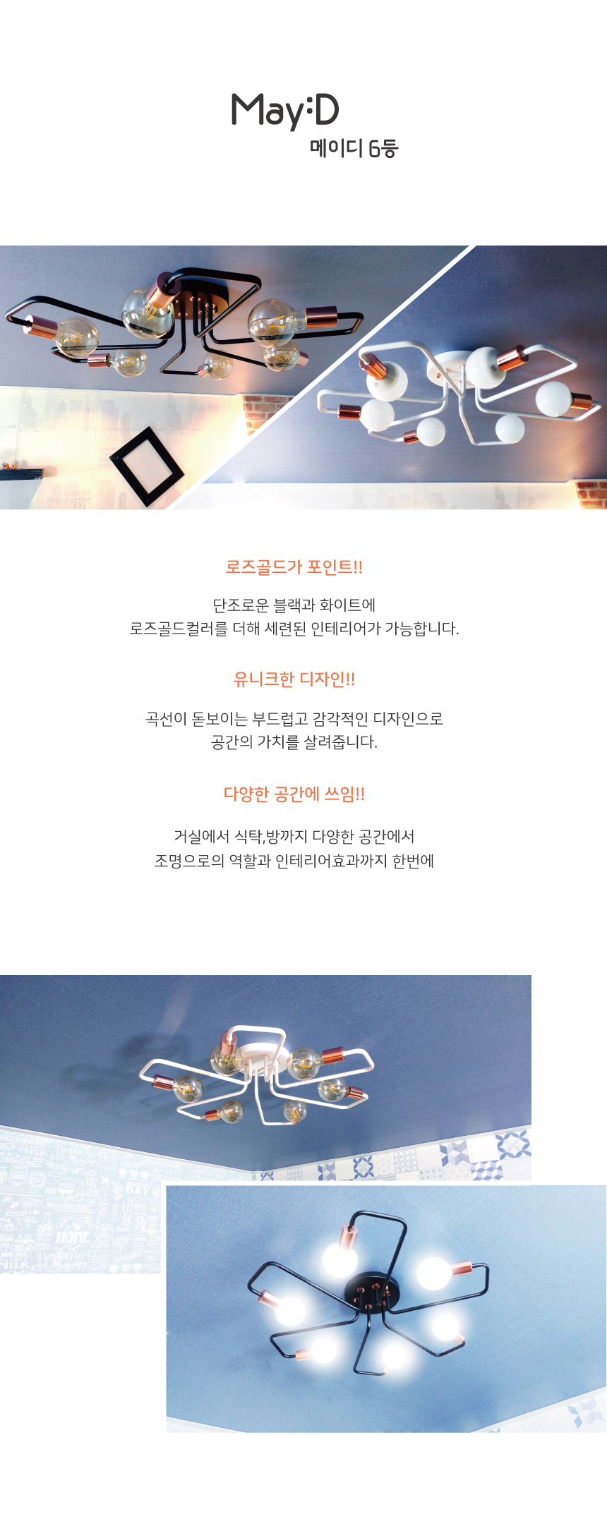 인테리어조명 메이디6등 블랙(E26) 거실등/방등