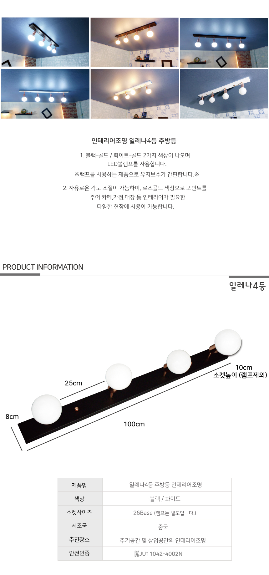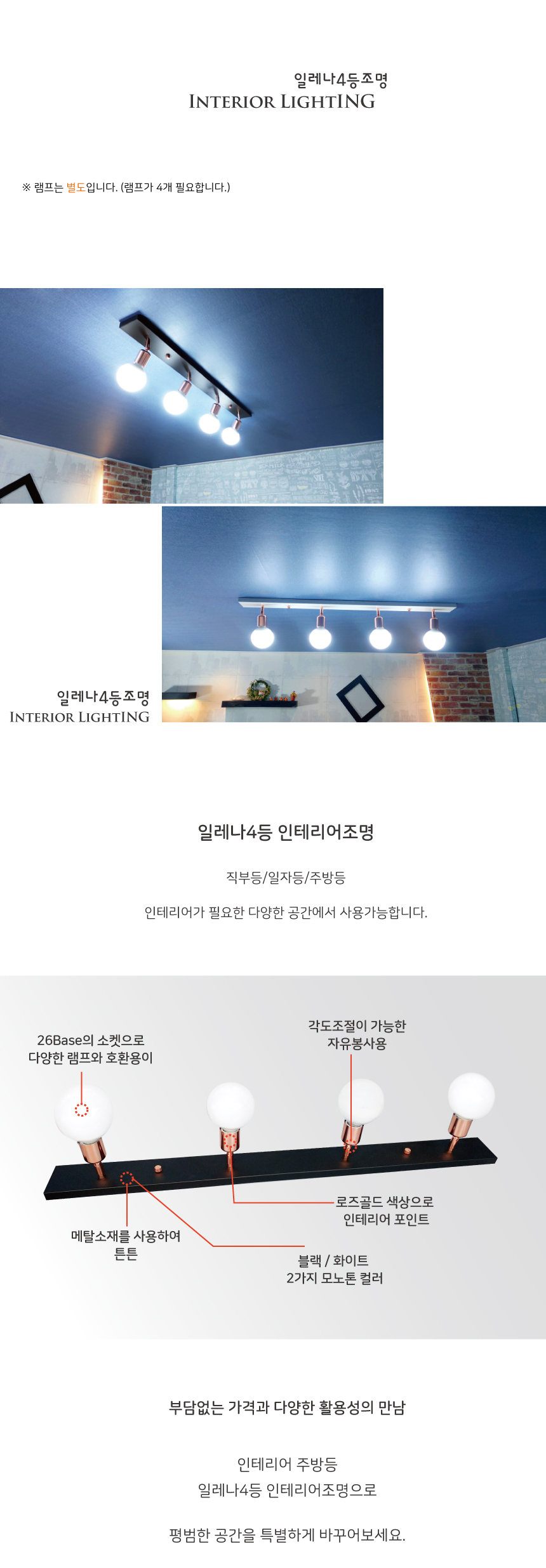 일레나 4등 주방조명 블랙 인테리어조명